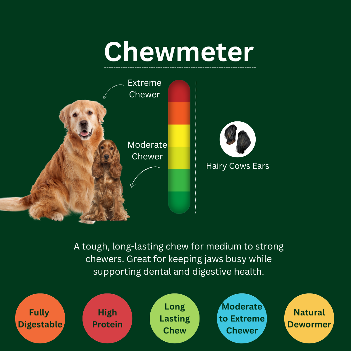 Hairy Cow Ears are a tough, long-lasting chew designed to satisfy your dog’s natural urge to chew while delivering real health benefits. The retained hair acts as a natural dewormer, helping to clean the digestive tract as it passes through. Rich in protein and low in fat, they’re ideal for dogs on a natural, lean diet.